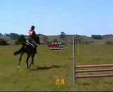 The galloping and opening up has helped fantasticly, when I put my leg on and said GO, he went - not as much as I hope he will eventually, but enough that he didn't have a plonky canter. We got stuck for a extra half hour as the third rider to go in the 80cm cleaned out fence three so that stopped the course until the TD made it down and the course go changed (suckingly), we now had to go through a gate on to a hard gravel race, along that for 70m odd, then do a S bend/turn to get onto fence 4, which was a horrible fence of those square 5gal pails stacked up. Fence one and two he was a little pokey at, but he looked at them then headed for them, before sucking back marginly.. then from there fence 5 we trotted (it was a 90deg bend through a gate onto it), and then I gave him a smack to GO, but pulled up at the water fence to get him to look, this one was very dirty/green with lots of floaties..... so he had a weee look then stepped into it. That was fine by me